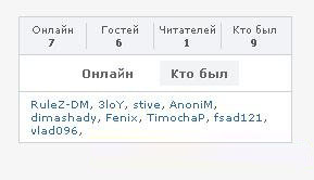 Улучшаем функцию Кто Онлайн для uCoz. Всем доброго дня, в этом посте мы будем создавать и улучшать внешний вид функции "Кто онлайн" для uCoz, плюс мы добавим путём js отдельный контейнер со списком зарегистрированных пользователей которые побывали на сайте в этот день. Шаг 1 - Переименовываем текст в статистике.: Для начала следует изменить стандартные надписи статистики пользователей uCoz на свои, для этого заходим: в Админ панель => Замена стандартных надписей => Статистика "Кто Онлайн" и заменяем следующий текст на свой: Онлайн всего: на Онлайн Гостей: на Гостей Пользователей: на Читателей Шаг 2 - Установим JS: Главная » Управление дизайном » Редактирование шаблонов перед закрывающим тегом </body> ставим скр